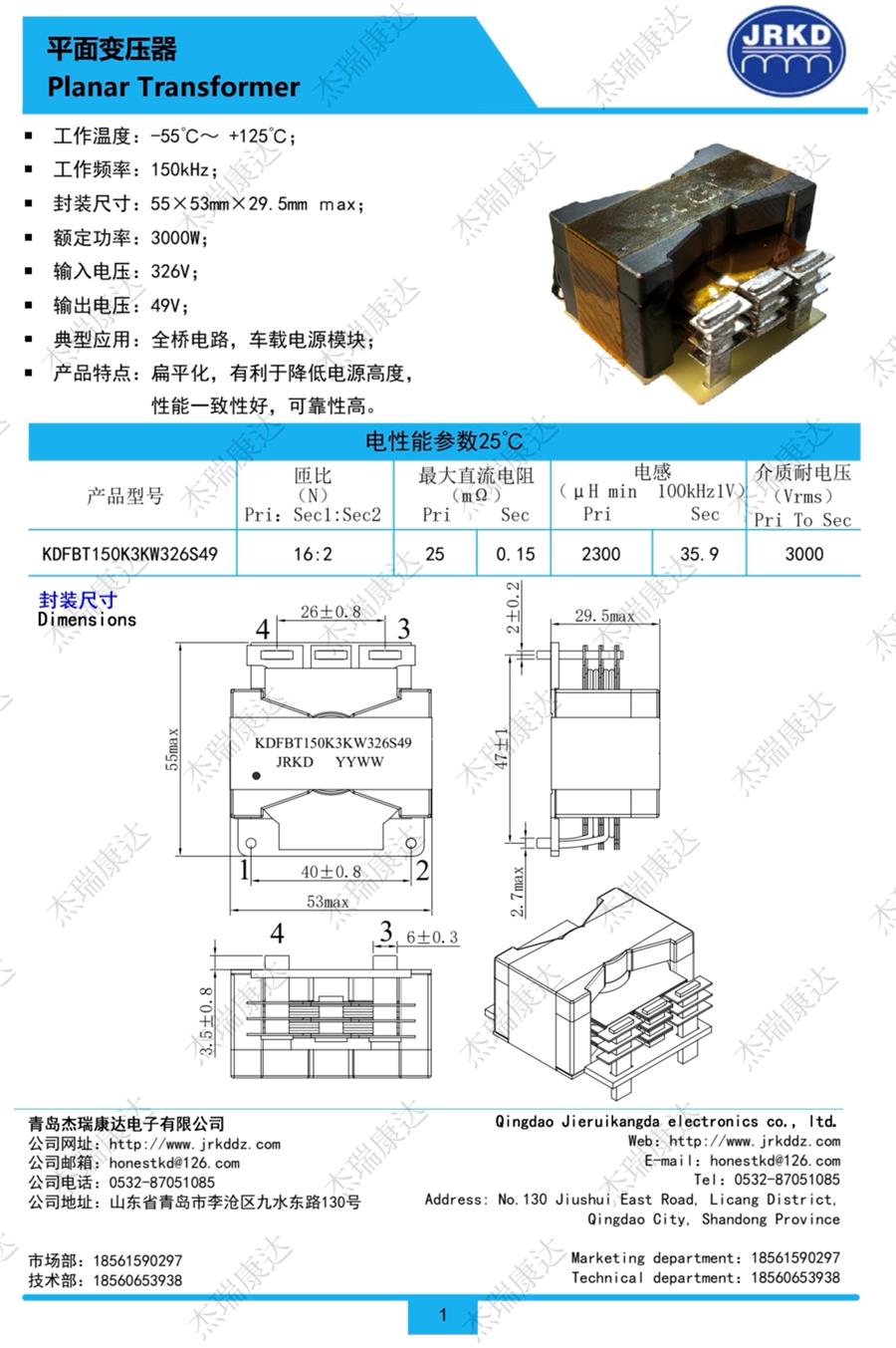 您的位置:产品展示 / 平面变压器KDFBT150K3KW326S49