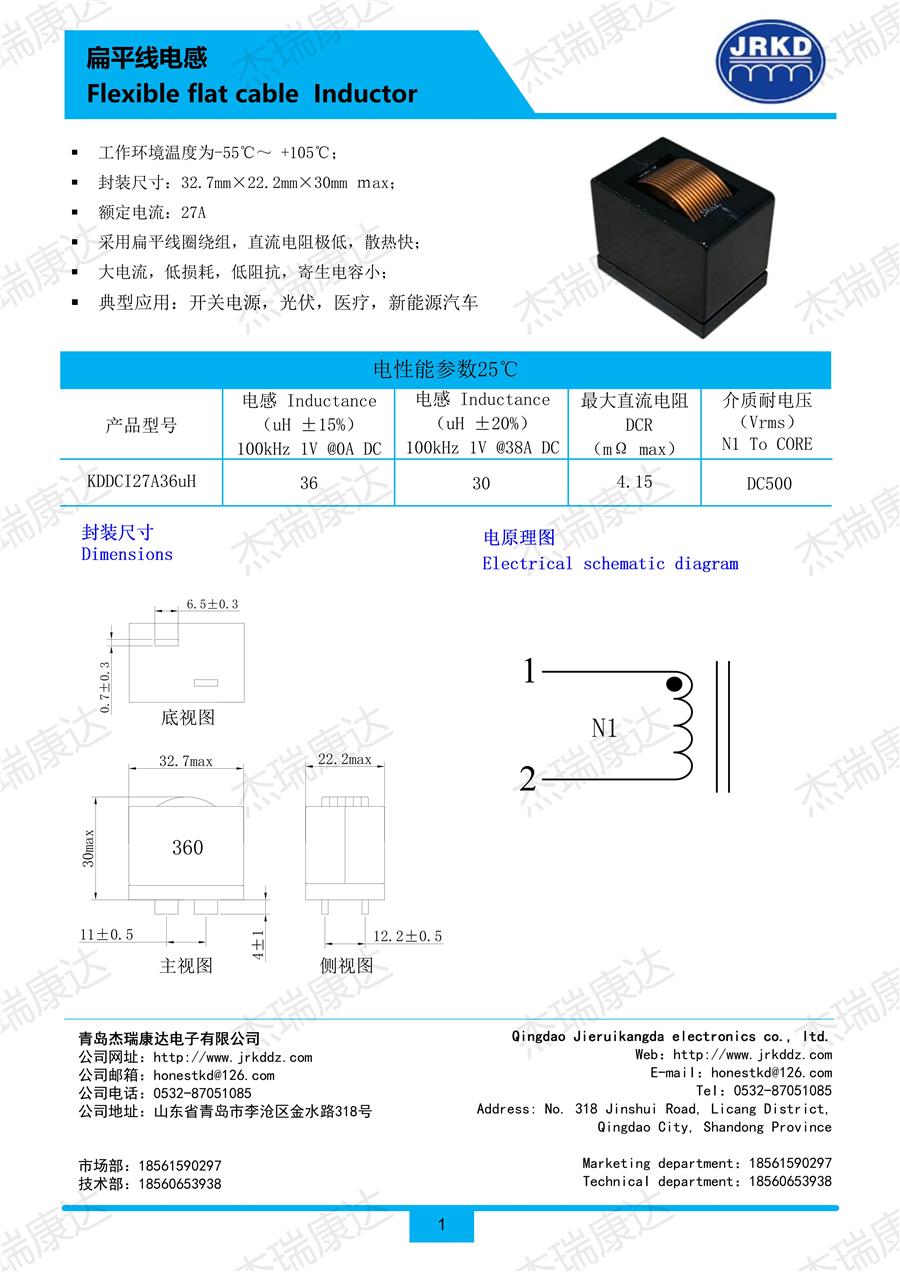 扁平线电感KDDCI27A36uH